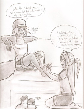 Here's page two of 's commission!I forgot to mention that I decided to approach this comic-like thing with a completely frame-less and absolutely no-dialogue method. It's all in the character's pose and faces that you can see what's going on.