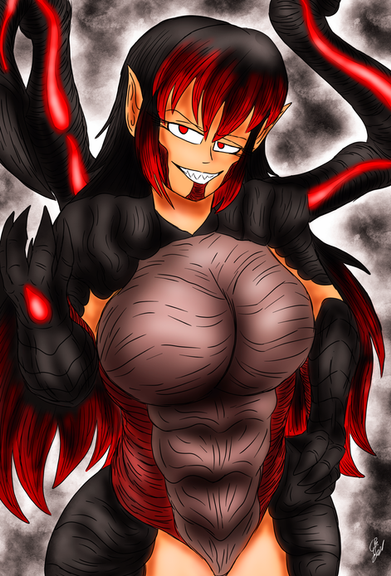 After I finished drawing one of 's girls...I got curious enough to try out one of my own! Meet Delia, and in spite of her appearance, she's actually very sweet - the one of her on the right will only come out when she's angry... or if you're feeling especially kinky. But she hasn't explored that... not yet, anyway.