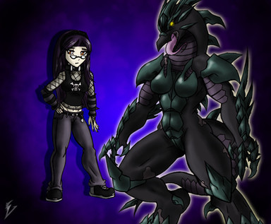 And she's always 9-10 feet tall, she just changes her appearance. And even though you can't see it, she will also have her wings in her monster form.