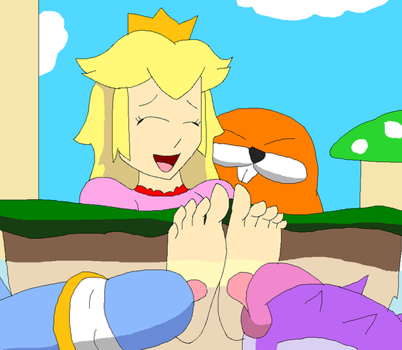 (Goes to town on Peach's feet)