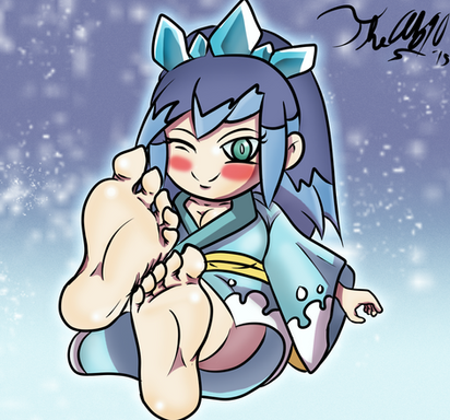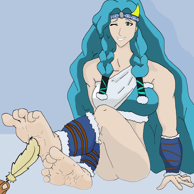 Aaand you know me, I couldn't resist doing something like this. Given that the character (seen in ice sculpture in the background!) looks quite wealthy and self-conscious, She would likely want whoever is watching to give those soles a good pampering...