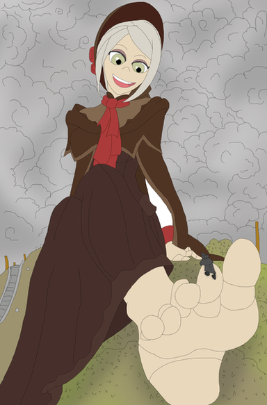 Oh wow, my friend...you always seem to do justice to characters with slender, long, big feet. This character is quite lovely in an old fashioned way, with her choice in clothing, calm smile, and her pale, pure skin. I dunno, I've always been a sucker for the pale, pure look. Her long, big soles look absolutely great, and I can see why you were so motivated to do this! I should also point out the excellent background with brick and fill details, as well as the nicely detailed leaves. It shows you put in just as much effort in all parts of your pieces.