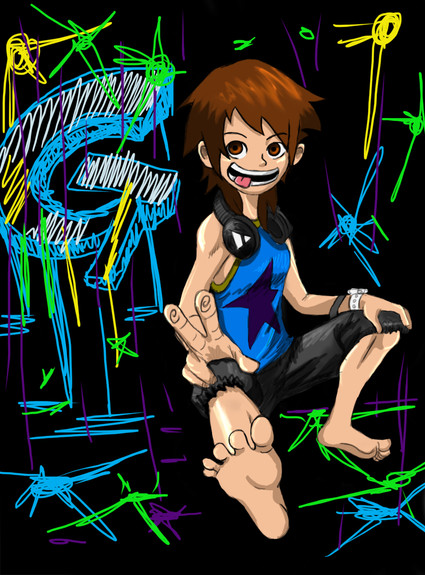 Anyways, the piece itself is great. I love mismatched toe-socks and her dyed hair. As always, you never waste time on drawing cute Nintendo girls, amazing work as always!