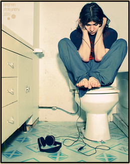 Great use of stocks. That stare is really hard to escape! And it's made even more intense with the yellow colour around her eyes, and the pose. Leaning forward to see even better.. Like she's finds something (the person who looks at this picture) very faschinating and scary. Freakshow. She's so alive and present.