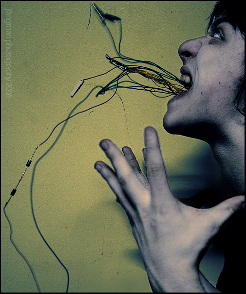 I like how her eye is a camera lense*, very interseting and dark just the way i like it. keep it up.