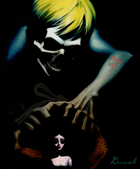 beautiful... such an expression, while holding the skull behind... i like the scratched lines across too, gives it an extra something... excellent work!
