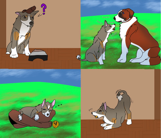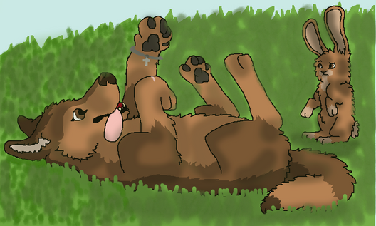 Alternate title: Annoyed bunny gets his alter ego squeezed from him within seconds of watching big dog mock him.Happy Easter DA! Hope y'all have a wonderful day~