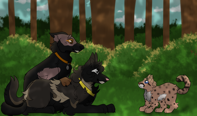The boys learned a little thing about Teamwork after listenin' to Clarity a bit during her training with Miss Sara :00So here they are practicing a bit of their tag teaming in a mock hunt. Discussing ways to take on the mighty *Grimm*