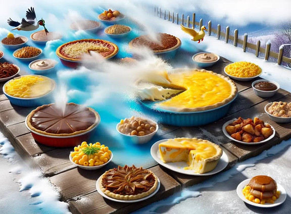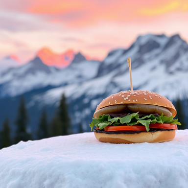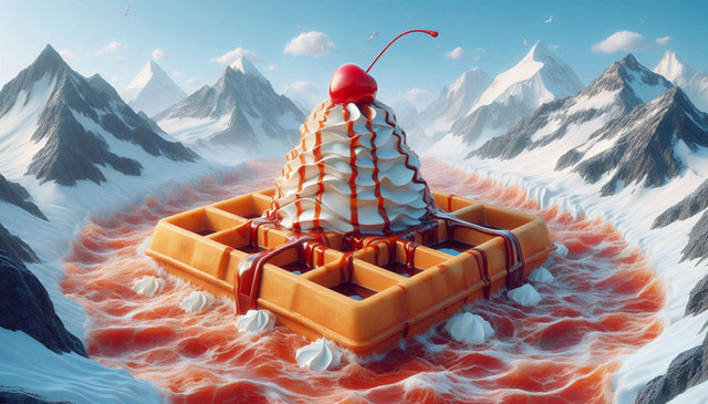 #absurd #bacon #breakfast #clouds #eggs #glacier #griddle #mountains #surreal