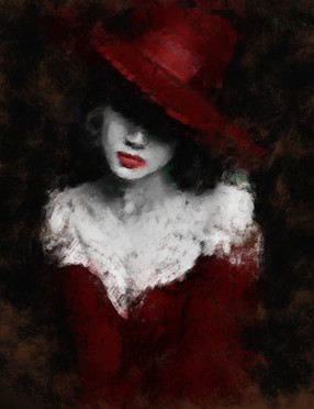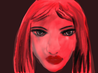 Hair is created by blending the Red and Magenta layers, erasing the face and hat, inverting the result to white lines and applying to the top (Red) layer without a mask.