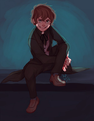 I really love the way you've drawn his hair and features. I don't think I've ever seen him drawn this way! A lot of styles depict him with a very rounded, shape-y style (which is lovely too), but the way he is here is a more realistic look with a surrealistic menacing feel ; u ;b I love it