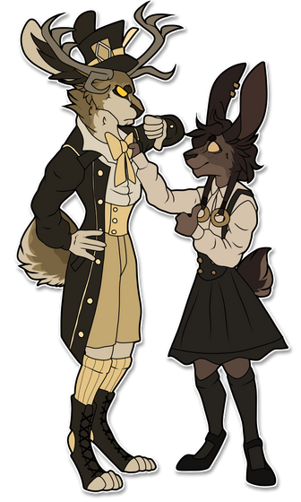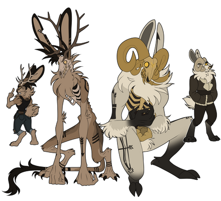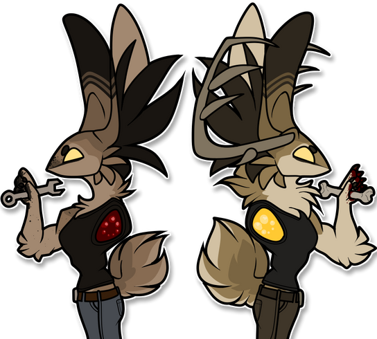 the jackalope version is much fluffier and violent and lives in the mountains and the rabbit version is more modern and normalshe always wears clothes as the rabbit, its optional for the jackalope