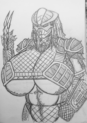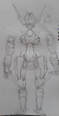 #hugebreasts #humanoid #machine #robotgirl #traditionaldrawing #helmetdesign #thickthighs #bikini_armor
