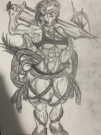 #creepycute #massivebreasts #musculargirl #originalcharacter #scars #killerwoman #yanderegirl #creepypastaoc #muscularthighs #scaroused #deadbydaylight #swords_woman