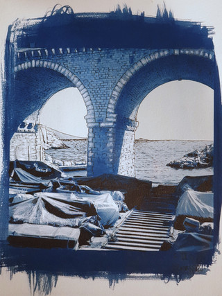 This is a symmetrical diptych that is half cyanotype and half woodcutRelated content