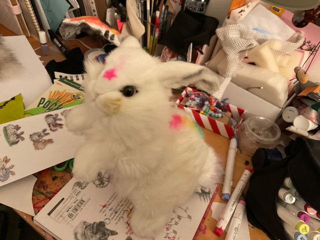 This patch was a commission for a client on Facebook. This custom embroidered iron-on patch depicts the client's pet rabbit.