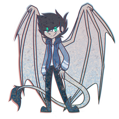 lKJLKJHGKLUHLERGUEHRLKHG DUDEEEEEEE ;; YOU DIDN'T HAVE TO DO THIS *SOBS AND TACKLEHUGS* GOD I LOVE IT, I CAN NOT. HE'S SO FUCKING CUTE AND SO OBVIOUSLY NOT ACTUALLY A BADASS. I LOVE HIS POSE AND HIS WINGS LOOKS SO FABULOUS. *STEALS THEM FROM HIM* THANK YOU SO MUCH DUDE ;; THIS TOTALLY MADE MY WEEK