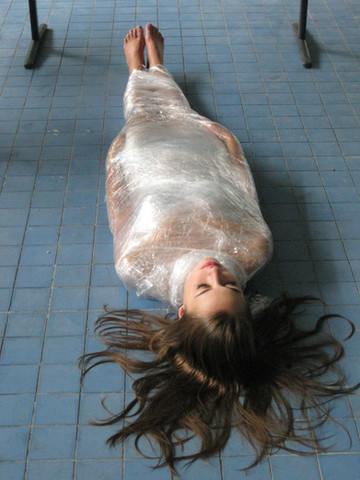 I've only just realised I never uploaded the images from this day. This was the only shoot I ever did with Rachel - [link] , then I remembered these images the other day when she asked me to be the photographer for her wedding.This was the second part of the shoot. During the outdoors shoot she was saying to me "I have an idea..... I want you to wrap me in cling film and make me look dead." And so, off we toddled, worked out how much cling film it takes to wrap an average sized female body(remember this boys and girls, it may come up in a pub quiz one day) - the answer I forget, but it was 2 boxes/rolls.