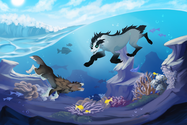 Love the markings on the wolves! Haha, the clownfish makes me smile! XD *sigh* Your underwater scenes always captivate me. (Which is ironic, because I have an irrational fear of the ocean beneath its surface. XD You just make it seem so friendly... )