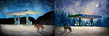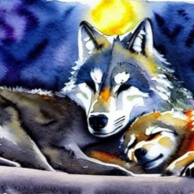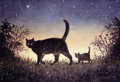 #cat #dog #firefly #forest #kitten #night #wolf #watercolor