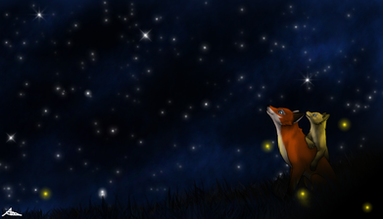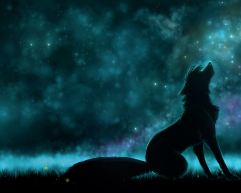 #fox #howling #love #moon #stars #together #wolf #fixen