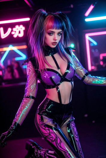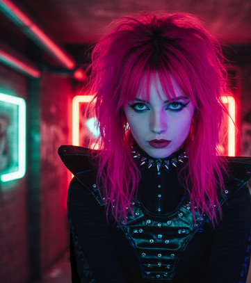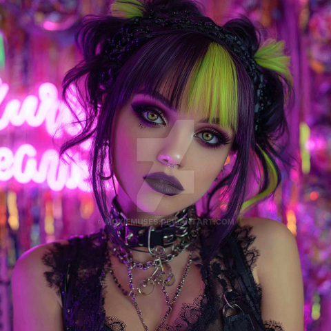 #photography #digitalart #portrait #cyberpunk #gothic #leather #neon #beauty #digitalpainting #ai #bun #fantasy #fashion #hair #makeup #photo #pretty #realistic #aiart #art