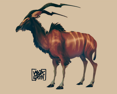 I was inspired by hartebeests but kind of deviated and made it a more a unique type creature in the end.