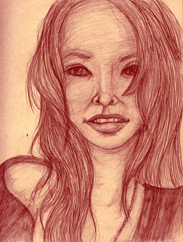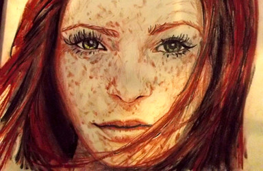 from this very beautiful self portrait image: curious-dee.deviantart.com/art… which actually has a lot of red tones, and her eyes are green i think. but, i dunno...was in a blue type moodbeauty