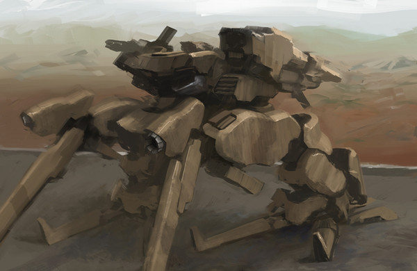 nice walking tank. is that a city on the horizon or mountains?