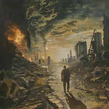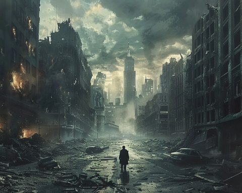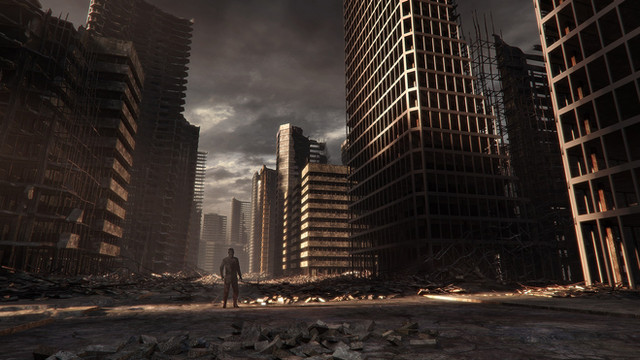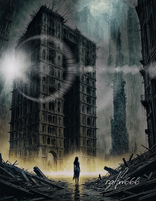 #apocalypse #apocalyptic #buildings #man #rain #space