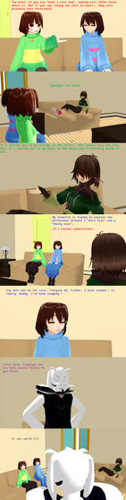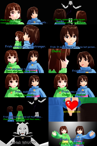 XD I can see Frisk being annoying to Chara. I picture that they'd act really childish whereas Chara would be more of a mature-ish person
