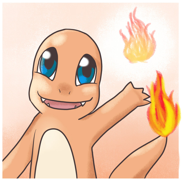 "Obviously prefers hot places. When it rains, steam is said to spout from the tip of its tail.."A redraw based on an old "Pokémon with You" pinbutton.