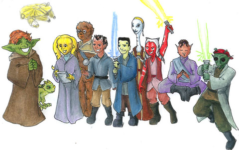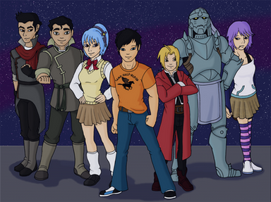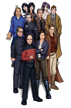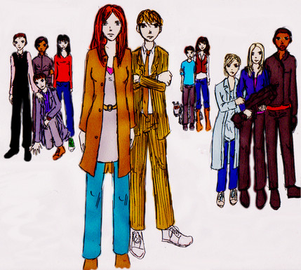 A preview of a pic I've been wanting to do for a long time. So far, I only have the characters colored and completed. I've yet to make the background. I'm just putting this up to showcase their fully colored costumes.This began with my pic of Tyler (first guy on the left) as the 5th Doctor from Doctor Who, and I decided to do my other Quirk et al kids in costumes from various sci-fi franchises (and others).