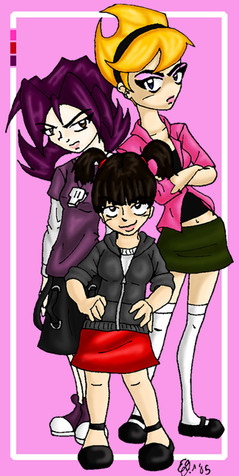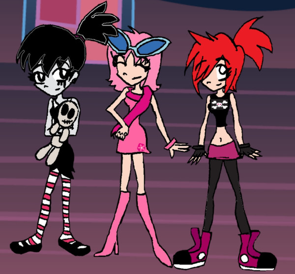 Mandy (The Grim Adventures of Billy and Mandy) + Gaz (Invader Zim) = Mazdy (wearing a dark pink dress with a black and gray striped shirt under it and black and gray stockings, this cute little girl would be a dangerous force to mess with; need I describe the chaos that would ensue?)