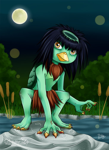 #japan #kappa #legend #lotus #lotusflower #monkey #myth #turtle #digitalpainting #monster