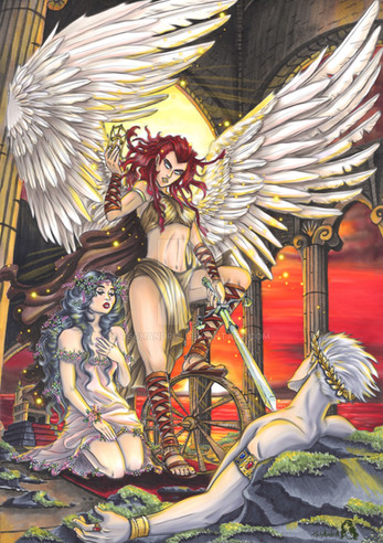 wht blows me away is the intense attention to all the details... from the little designs on her dress to the shading on his wings... truly wonderful to look at.