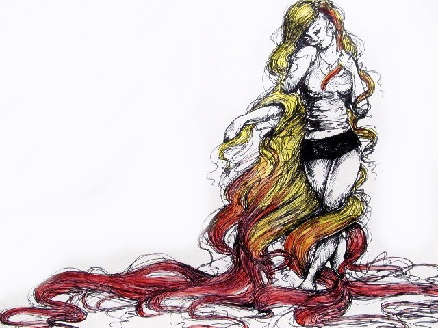 Just something quick i did the other night. I've been back at my painting and i needed a break from it for just a while. I think there must be something in the public psychic right now about a mass of tangled ginger curls. Check out my friend Ray's latest addition:[link]
