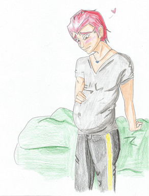 Cool, you seldom see Riku preggers. I love his tattoo---what an interesting additon; it looks like it kinda ties everything in (a good accent). The expression, lineart, and colouring are all good, too.