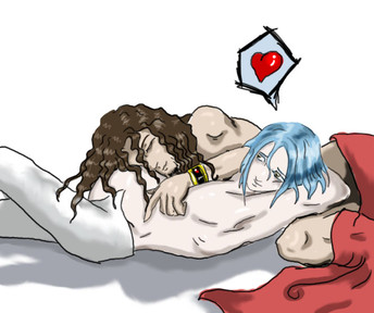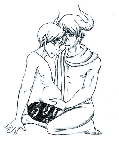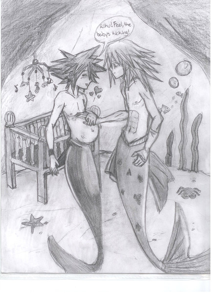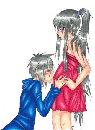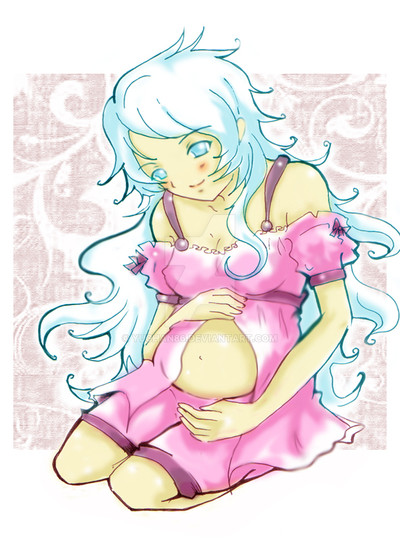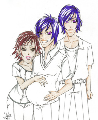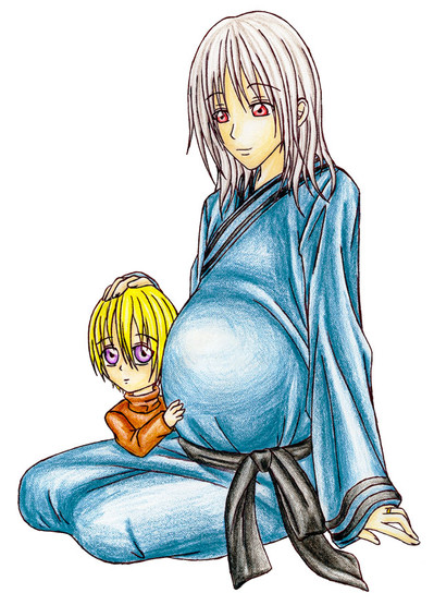A sketch byDin and Trouble, a mangled version of a drawing of mine where I made Trouble very pregnant. I coloured the non-pregnant version, but haven't found a kind way to mangle the same drawing and then have it be the same colouring except for just pregnant =/
