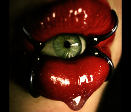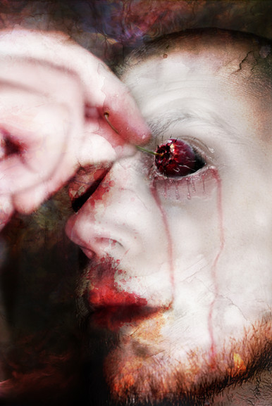 There is a cherry in this person's eye socket. Got it now?