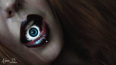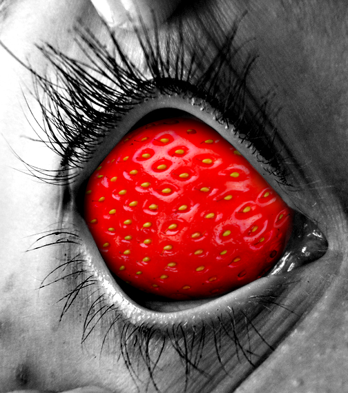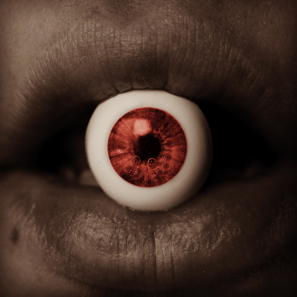 I really do love this manipulation because it really does kind of define the macabre genre. I also love the blood work on teeth and the lips. The only thing I'd like to point out is that there probably shouldn't be a glare on the eye. When it's removed from the socket the sclera, the white of the eye, dulls, as does the the cornea, the clear membrane over the pupil. But then, it's fun to imagine that maybe the blood is making it keep it's shine, or maybe it's freshly plucked.