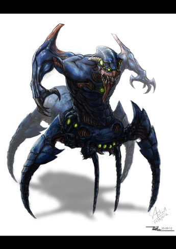 So yeah, this is sort of in-between the old lurker and the new model; I don't exactly know what the original one looked like, reallyβthe in game model was a lot bulkier and cooler looking I think than this render which came out at the time BW was released, which imo looks too much like a hydra with a couple of extra legs. Not entirely a fan of the current model either, so! This is then a bit more original on my part than most of these. I like to think it's still recognisable, though, so I 'spose that's up to you