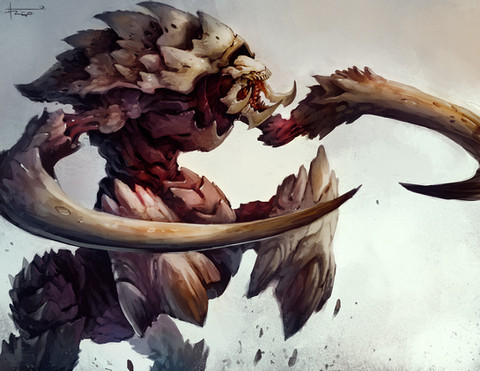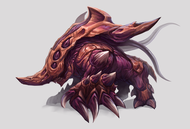 Quite near the start of development on Heart of the Swarm, *PhillGonzo requested a new concept of the Torrasque hero ultralisk from original SC, since while there was technically a massive Torrasque-named ultralisk in Liberty it had only been a scaled up version of the regular unit, and we thought it might be worth giving a bit of extra love.Unfortunately this one never got very far into production, but I enjoyed at least creating this piece - trying to play up the original ultralisk look from in-game, the old manual illustrations, and that brief appearance in the SC:Ghost cinematic trailer.