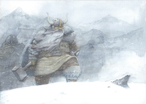 Aha, what a charming little huntsmen! I really like the atmosphere you put into this piece with all the little textury brushstrokes...The scene feels nice and chilly, but heartwarming all the same c: