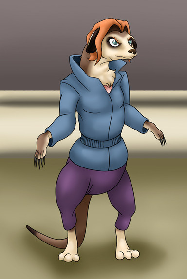 Crikey, eh? I didn't expect there to be marusipials in here, but oh well, very cute design, hopefully she won't end up getting punched by a guy defending his dog