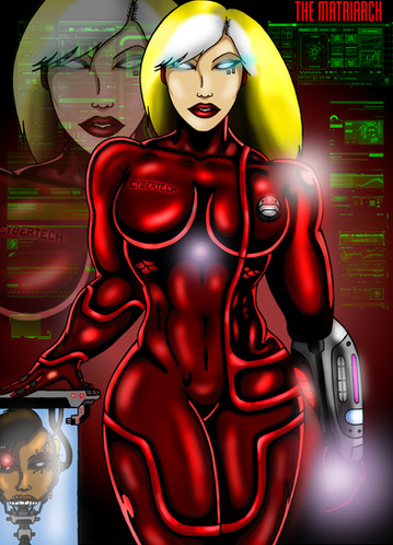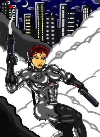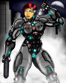 Here's an alternate version of [link] Just wondering how would Monie look in all black verses the blueish-gray. With the silver halo effect, she actually looks more mechanical here to me, and I have no qualms about that! Which one do you like better?*From the original version* Yes, once again back it's the incredible P!!! (Mad props if you got that reference)....P as in Project: Genesis herself, Simone Rattica aka The Machine, ready for action with a hand cannon in her right hand and a blade of steel in her left hand. Her onboard systems and programming are prepared for whatever obstacle that lies in her path, but her human instincts and adrenaline is much more powerful than programming could ever be....the crossing of her high-tech cyborg body and programming with her natural killer instinct is what makes Simone one of the most dangerous warriors on the planet!