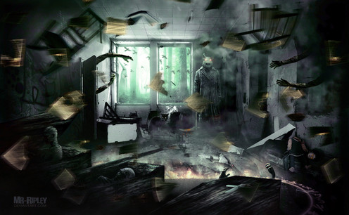 The technique could be improved on, I won't lie. But the impact is phenomenal. The writing on the floor and the walls is really emotive and builds up the atmossphere of the peice. But what really makes it for me, is the cat. It really adds a sense of dread, and distress, as we think about what will become of the people he leaves if he does end his life.