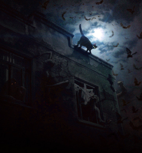 Creepy forest! I like how there are hints of red in the mostly gray background. The warm accents tie the backdrop together with the character.