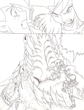 continuo la lucha, beamoth no se podia mover asi que empleo toda su fuerza en un solo momento cuando lidia pasara frente a ella, callendole encima, clavo sus garras al suelo para evitar que escapara, con la cabeza una mordida certera y se acababa, pero no con to con que lidia liberara un brazo, detuviera su quijada evitando que moviera la cabeza libremente, asi quedaron atoradas.Beamoth ya nose podia mover y lidia tampoco, si Beamoth intentaba mover algun brazo lidia podria escapar y darle el golpe de gracia, lidia no podia soltar su cabeza porque si lo hacia ella le morderia y seria el final para ella.