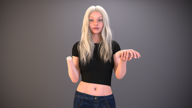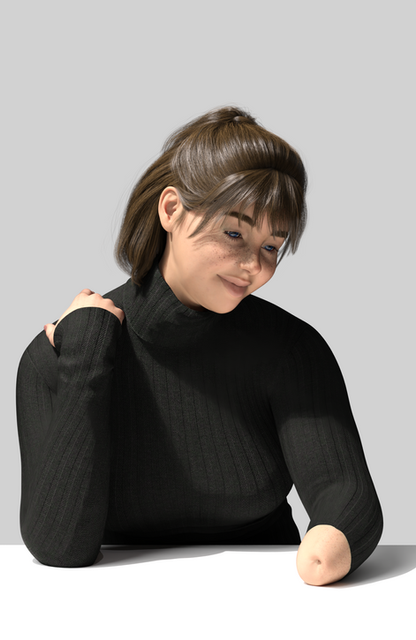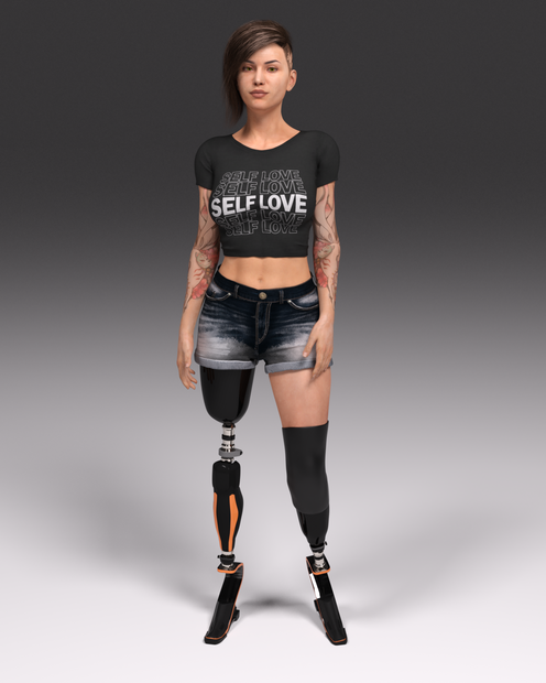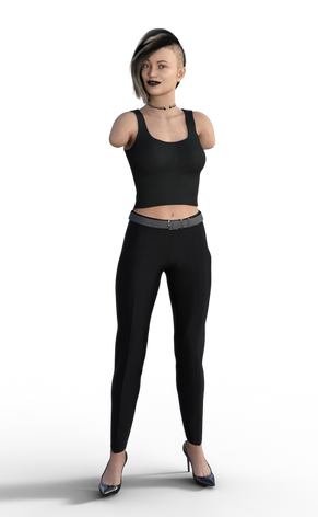 As part of Saanes' request, I made a new character: Mel (or Melanie if you want. I like short names). I think it is obvious why she is not wearing shoes or socks. My list of characters lacked a DAE (only) and therefor it was a pleasure to make a DAE. I gave her a bit of a gothic look (I think). Tell me what you think and maybe what scenes I should do with her. I already did a pic with Kat. Oh, and because Kat is already a DSD, Mel still has stumps.In my opinion her eyes are bit sad...